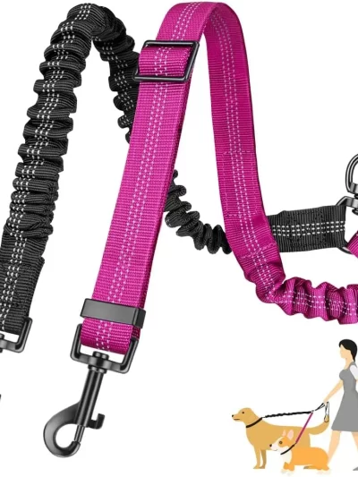 1.6ft Long Dual Dog Leash Attachment – Double Leashes for Training Small to Large Dogs – Adjustable Strap Shock Absorbing Bungee