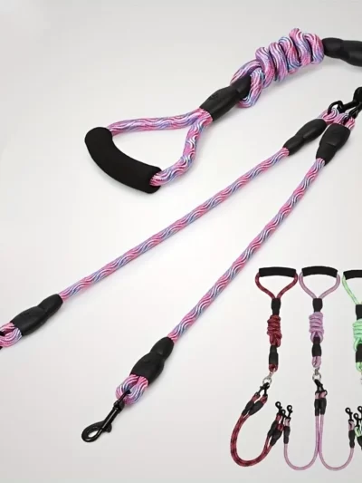 Pet dual head dog walking rope with wavy pattern, one drag two traction rope, anti winding and detachable